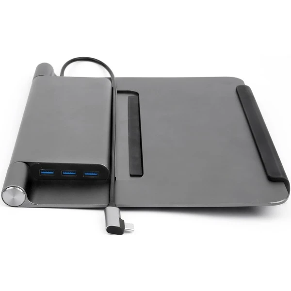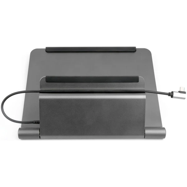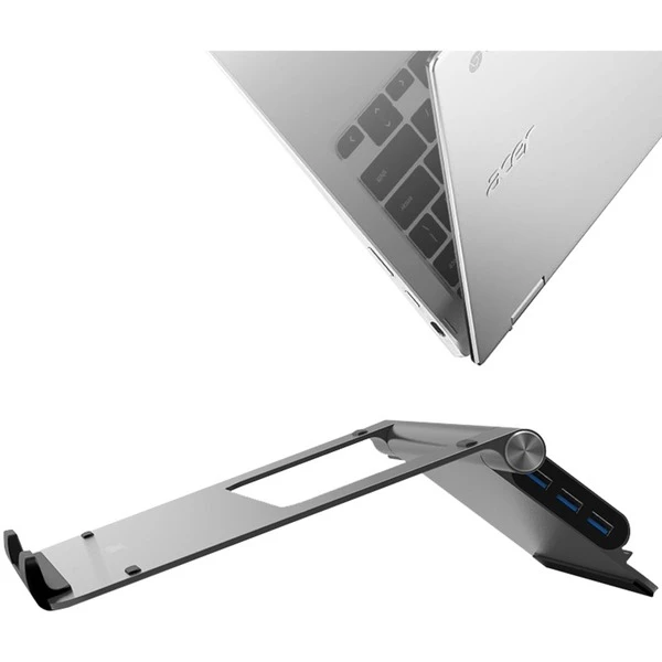 Der robuste Notebook-Ständer aus Aluminium eignet sich für Notebooks von 11,6″ bis 15,6“. Die integrierte Dockingstation verfügt über drei USB Typ A, einen USB Typ C und einen HDMI Anschluß. Diese wird über ein USB Typ C Kabel an das Notebook angeschlossen. Der Ständer lässt sich auf verschiedene Winkel einstellen um das Notebook optimal auszurichten. Zum Transport lässt es sich ganz einfach zusammenklappen.Art.-Nr.: 1773218