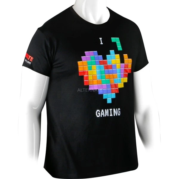 Rundhals T-Shirt mit mehrfarbigen Frontprint und ALTERNATE Logo auf den kurzen Ärmeln. Durch die Baumwollqualität sehr angenehm zu tragen und dabei äußerst pflegeleicht. Bekannt durch Gamescom & Youtube! Das ALTERNATE I LOVE GAMING T-Shirt lässt jedes Gamer-Herz höher schlagen.Art.-Nr.: 1392161