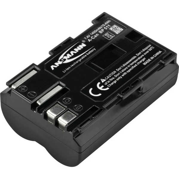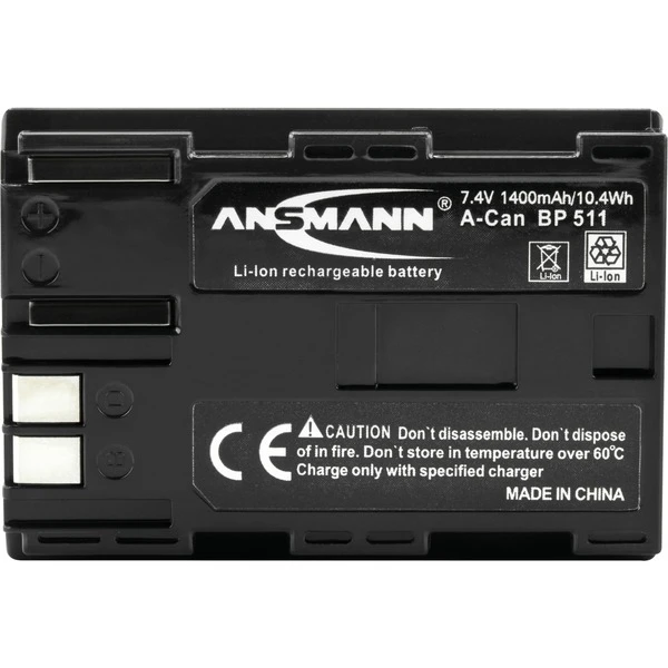 Der Digitalkamera-Akku Ansmann A-Can BP 511 ist ein Lithium-Ionen-Akku für die Kameramodelle Canon EOS 10 D, 20 D, 30 D, 300 D, D-30, D-60, EOS 5 D, EOS Rebel; Powershot G 1, G 2, G 3, G 5, G 6; Powershot Pro 1, Pro 90, ZR 10, 25; MV 30, 30i,300, 300i, 400, 400i, 430i, 450i, 500, 500i, 530i, 550i, 590, 600i, 630i, 650i, 700, 700i, 730i, 750i; MVX 1i, 2i, 3i, 100i, 150i; FV 40, 400; ZR 25, 30, 40, 45, 50, 50MC, 60, 60MC, 70, 80, 85, 90. Er hat eine Spannung von 7,4 Volt und eine Kapazität von 1400 mAh.Art.-Nr.: 987349