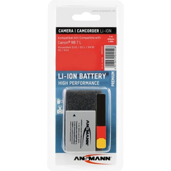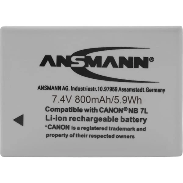 Der Lithium-Ionen-Akku Ansmann A-Can NB 7 L ist geeignet für die Digitalkameras Canon Powershot G10, G11, SX30 IS und G12. In Kombination mit dem im Lieferumfang der Geräte enthaltenen Akku erhöht er die Betriebsbereitschaft.Art.-Nr.: 987355