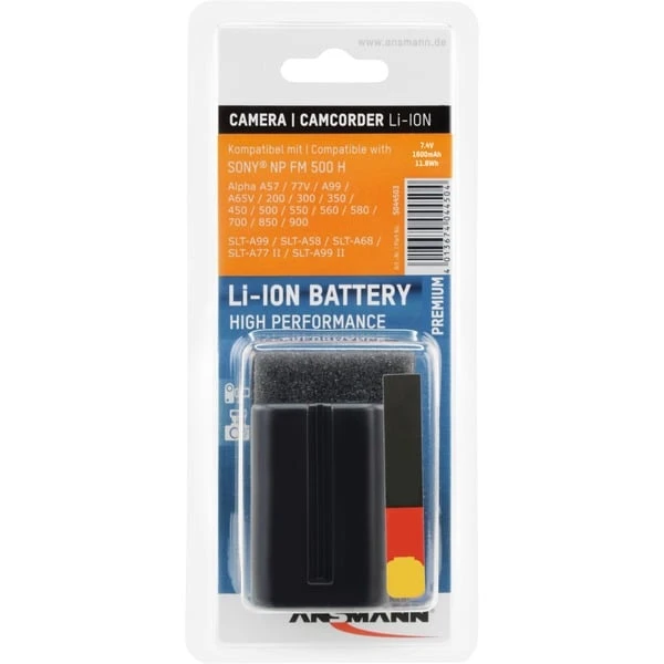 Der Lithium-Ionen-Akku Ansmann A-Son NP FM500H ist geeignet für die Digitalkameras Sony Alpha 65V, 77V, 200, 300, 350, 450, 500, 550, 560, 580, 700, 850 und 900. In Kombination mit dem im Lieferumfang der Geräte enthaltenen Akku erhöht er die Betriebsbereitschaft.Art.-Nr.: 987440