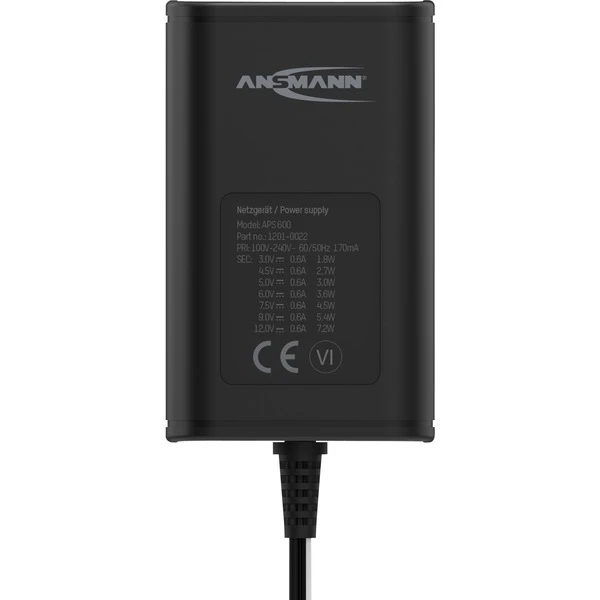 Das APS 600 von Ansmann ist ein von 3 bis 12 Volt umschaltbares Universalnetzteil zur Stromversorgung vieler Elektrokleingeräte. Im Lieferumfang sind verschiedene Ausgangsstecker enthalten, die an der Ausgangsleitung in der gewünschten Polarität angeschlossen werden können.Art.-Nr.: 1705311