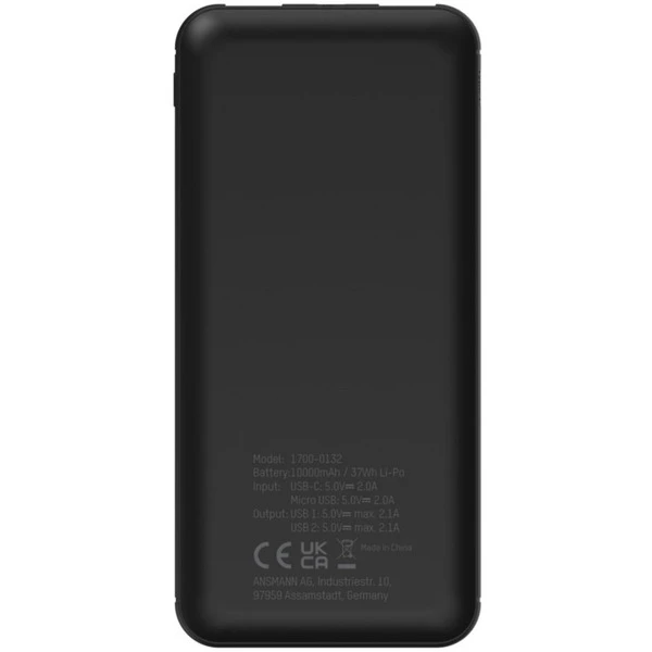 Die Ansmann Powerbank 10.000 mAh PB212 ist der ideale Begleiter für unterwegs. Die ANSMANN Powerbank hat neben zwei USB-A Ports einen Micro-USB und einen USB-C Port integriert. Über die USB-A Anschlüsse wird die Energie über ein für Ihr Smartphone und / oder Tablet passendes Ladekabel abgegeben. Über den Micro-USB- und USB-C Anschluss kann der Akku ganz bequem am PC oder mit einem handelsüblichen USB Ladegerät an der Steckdose wieder aufgeladen werden. Mit einer Ladekapazität von 10.000 mAh und einer Ausgangsleistung von maximal 2,1 A (bei 5V DC) lädt das kleine Kraftpaket mobile Geräte mehrfach wieder auf. Der hochwertige Zusatz-Akku im stabilen Gehäuse ist kompatibel für alle gängigen USB-Geräte wie Smartphones, Tablets, Mobiltelefone, MP3-Player, Navigationsgeräte und viele weitere Anwendungen, die über USB aufgeladen werden können. Der eingebaute Überladeschutz sorgt dafür, dass die Powerbank nach erfolgreicher Ladung den Ladevorgang automatisch beendet. Der Tiefentladeschutz schaltet die Powerbank ab, sobald die Spannung der Powerbank beim Laden eines angeschlossenen Gerätes unter einen bestimmten Wert sinkt und verhindert somit eine Schädigung des Akkus und des Produktes. Der Kurzschlussschutz rundet die Sicherheitsfunktionen ab und sorgt neben der Abschaltautomatik für maximale Sicherheit.Art.-Nr.: 1784247