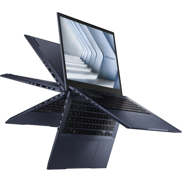 Das ExpertBook B7 Flip (B7402FVA-P60054X) bietet mobile Rechenleistung mit einem Plus an Flexibilität. Dieses Convertible-Notebook für Businessaufgaben verfügt über einen 35,6 cm (14″) großen Touchscreen mit QHD+-Auflösung (2560 x 1600 Pixel) und einer Helligkeit von bis zu 400 cd/m². Der Bildschirm kann per Stift genutzt und umgeklappt werden, womit das Gerät als Tablet nutzbar wird. Für reichlich Vortrieb sorgt ein Intel®-Prozessor des Typs Core™ i7-1360P, der mit 16 Gigabyte DDR5-Arbeitsspeicher und einer 512 Gigabyte großen M.2 PCIe-SSD kombiniert wurde. Die breite Anschlussvielfalt mit unter anderem Thunderbolt 4, WLAN bis Standard Wi-Fi 6E und Bluetooth 5.3 macht dieses Convertible fit für den Business-Alltag. Die Webcam und das hochwertige Soundsystem mit Unterstützung für Dolby Atmos runden das unter 1500 Gramm schwere Paket ab.Art.-Nr.: 100012948