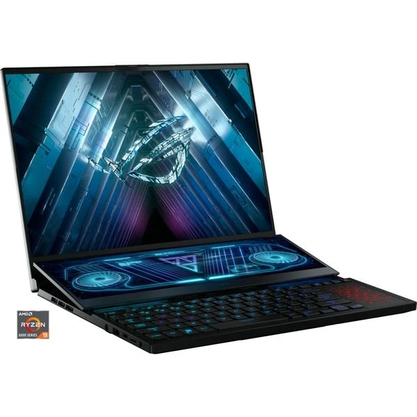 Das ASUS ROG Zephyrus Duo 16 (2022) (GX650RM-LO071W) hebt Gaming auf den nächsten Level. Die leistungsstarke Kombination eines AMD Ryzen 9 6900HX Prozessors, 32 Gigabyte DDR5 Arbeitsspeicher und einer NVIDIA GeForce RTX 3060 mit 6 Gigabyte VRAM sorgen für flüssiges Gameplay. Das 40,6 cm (16“) große Hauptdisplay ist dank Mini-LED-Technik besonders hell und farbtreu und sorgt dank einer Auflösung von 2.560×1.600 Pixeln für brillante Darstellung mit einer Wiederholrate von bis zu 165 Hz. Ein weiteres Highlight ist das ROG ScreenPad Plus. Das 35,8 cm (14,1“) Touchdisplay erweitert den Hauptbildschirm und bietet erweiterte Übersicht und innovative Bedienungsmöglichkeiten für Gamer, Kreative, Entwickler oder Streamer. Mit WiFi 6E, Bluetooth 5.2 und 2,5 Gigabit-LAN stehen schnelle Vernetzungsmöglichkeiten bereit. Ein umfangreiches Schnittstellenangebot mit HDMI 2.1, 2x USB-C und 2x USB-A rundet die Ausstattung dieses Gaming-Notebooks ab.Art.-Nr.: 1861277