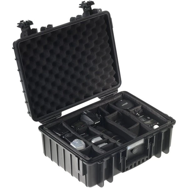 Mit dem hochwertigen Outdoor Case Typ 5000 aus dem Hause B&W International erhält man den idealen Transportkoffer einer Menge Stauraum, bei einer handlichen Größe. Er bietet Platz für Kameras, Objektive, Blitzgeräte, Akkus, Speicherkarten etc. Dabei bleibt er handlich und gut zu transportieren und bietet sehr guten Schutz. Um allen Anforderungen für den Außeneinsatz gerecht zu werden, ist der Koffer mit einem herausnehmbaren, gepolsterten Einsatz aus abwaschbarem Gewebematerial mit variabler Facheinteilung mittels Klett und Flausch im Kofferboden versehen. Eine Noppenschaum Einlage im Deckel sorgt für weitern Schutz. Der Koffer ist stabil, staubdicht und wasserdicht nach IP67 und hat zwei Ösen für Vorhängeschlösser (Durchmesser: 7 mm).Art.-Nr.: 1512328