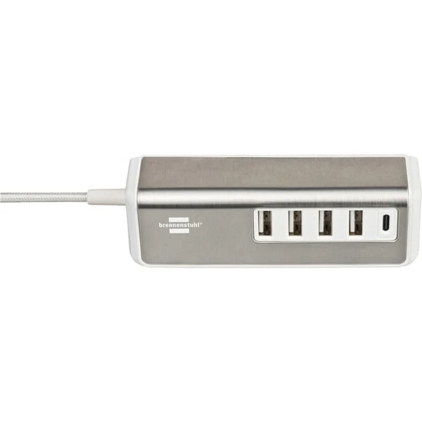 Das Brennenstuhl estilo Mehrfach-USB-Ladegerät 1508230 ist eine USB Ladestation mit hochwertiger Edelstahloberfläche, fünf USB-Ladebuchsen und 1,5 Meter Textilkabel. Das stylische und zugleich kompakte USB Ladegerät mit vier USB-A Ladebuchsen (insg. max. 4,2A output) und einer intelligenten Ladebuchse Typ C (Power Delivery, max. 20W) ermöglicht das Aufladen von bis zu 5 USB-fähigen Geräten gleichzeitig. Dank der innovativen Power Delivery Ladebuchse, welche die angeschlossenen Geräte mit maximal 20 Watt Leistung versorgt, werden die Endgeräte deutlich schneller und effizienter geladen. Das 20 Watt Schnellladegerät eignet sich ideal zum Aufladen von Smartphones, Tablets oder anderen USB-fähigen Geräten und eignet sich mit dem kompakten Design auch als perfekter Reisebegleiter.Art.-Nr.: 1832674