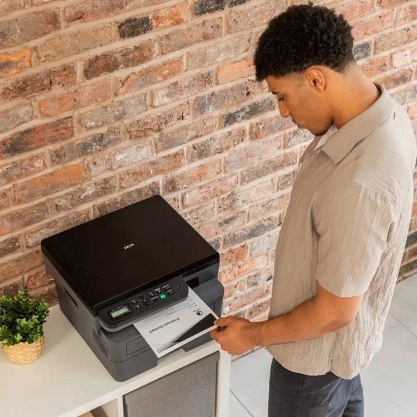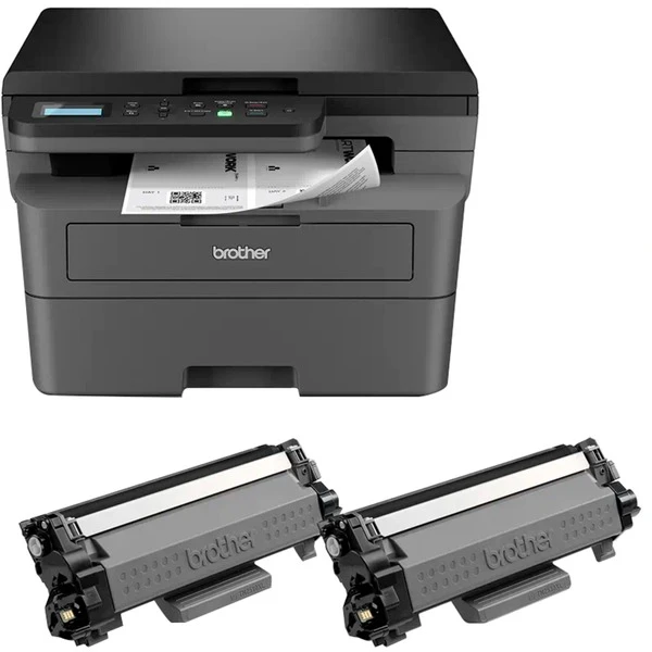 Effizienter Schwarzweiß-Druck, eine breite Palette an Funktionen, kleine Stellfläche: Der DCP-L2627DWXL ist ein leistungsfähiger 3-in-1-Multifunktionsdrucker für kleine Büros oder das Homeoffice. Er druckt mit Lasertechnik bis zu 32 Seiten pro Minute und verfügt außerdem über einen Flachbett-Scanner und eine Kopierfunktion. Der DCP-L2627DWXL ist per WLAN vernetzbar und unterstützt WiFi direct printing für Direktdruck von Mobilgeräten mit iOS oder Android. Eine automatische Duplexfunktion ermöglicht doppelseitiges Drucken mit einer Geschwindigkeit von bis zu 16 Seiten pro Minute. Ein Leisemodus reduziert auf Wunsch die Betriebsgeräusche, der Tonersparmodus sorgt für höhere Reichweiten des Verbrauchsmaterials. Im Lieferumfang dieses Drucksystems sind zwei Toner mit jeweils 3000 Seiten Reichweite (ISO) enthalten.Art.-Nr.: 100018652