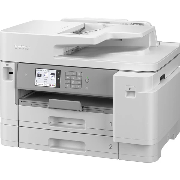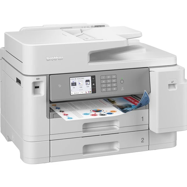 | Feature | Broschürendruck, Duplexeinheit (Drucken), Apple AirPrint, Mopria-zertifiziert, Direktdruck von USB, Druckfunktionen: 2, 4, 9 oder 16 A4-Seiten verkleinern und auf eine A4.Seiten drucken, Posterdruck (eine A4-Seite auf 4 oder 9 A4 Seiten vergrößern und Drucken), Barcode-Druckmodus, leere Seiten überspringen, Wasserzeichen-Druck, speichern von Einstellungen als Druckprofil, Leisemodus, Tintensparmodus. Das Gerät unterstützt nativen Druck aus ChromeOS. Duplexdruck wird für DIN A4, Letter, Excutive und A5 unterstützt. Unterstützte Mediengewichte: 64-220 g/qm. Brother Mobile Connect, Brother Print Service Plugin, Web Connect, Brother Apps für einfachen Druck von Mobilgeräten. Secure-Print für gesicherten Druck über PIN-Eingabe und NFC-Kartenleser für sichere Authentifizierung. Scanfunktionen: Scan to Email, Text, USB, Netzwerkspeicher, Hintergrundfarbe entfernen, Scan-Vorschau, leere Seite überspringen, automatische Entzerrung. Kopierfunktionen. 2-auf-1 Ausweis-Kopie, Quittungskopie, Poster-Kopie. Faxfunktionen: Senden und Empfangen von Faxen über den PC, Internt-Fax, LDAP-Zugriff auf Adressbücher, automatische Verkleinerung auf DIN A4 | ||