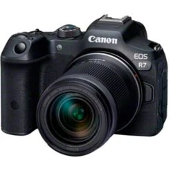 Die Canon EOS-R7 ist mit einem APS-C-Sensor ausgestattet. Der bietet mit dem beiliegenden Objektiv 1,6-mal mehr Telereichweite als dieselbe Brennweite bei einer Vollformatkamera. Man wird das Gefühl haben, direkt neben dem Motiv zu stehen, und kann ganz einfach bildfüllende Tierporträts und eindrucksvolle Actionbilder aufnehmen. Als Hybridkamera ermöglicht die EOS-R7 4K/30p Videoaufnahmen in hervorragender Qualität (Oversampling von 7K) und einen flüssigen 4K/60p Modus, mit dem Bewegungen erstklassige dargestellt werden. Der kamerainterne Bildstabilisator arbeitet mit dem optischen IS des Objektivs zusammen und sorgt für flüssige Videos und Fotos bei Belichtungszeiten, die 7 Stufen länger als üblich sein können. Hybrid-Fotografen werden auch von dem Dual Pixel CMOS AF II mit Deep-learning begeistert sein, der Motive verfolgt und scharf hält. Die EOS-R7 ist schnell. Richtig schnell. Sie fotografiert dynamische Motive mit bis zu 15 B/s im mechanischen Verschlussmodus oder mit bis zu 30 B/s mit dem leisen elektronischen Verschluss – und das alles mit AF und AE, damit jeder flüchtige Moment perfekt aussieht. Egal, ob man 32,5-Megapixel-Fotos oder aufwändige 4K-Videos aufnimmt, diese spiegellose APS-C-Kamera bietet ein ideales Gleichgewicht zwischen Detailgenauigkeit und Low-Light-Eigenschaften mit einer maximalen Empfindlichkeit von ISO 32.000.Art.-Nr.: 1915622