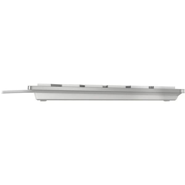 Die CHERRY KC 6000 SLIM FOR MAC ist eine Tastatur im Chiclet-Design mit Mac-Layout. Mit 12 Funktionen ausgestattet (wie beispielsweise Bildschirm sperren, Bildschirmhelligkeit, Mission Control und Mediensteuerung ), erleichtert sie den täglichen Umgang mit einem Mac und sorgt dank des Ziffernblocks für eine komfortabel Zahleneingabe. Die nahezu geräuschlose SX-Schaltertechnik bietet ein hervorragendes Schreibgefühl und eine lange Lebensdauer mit bis zu 10 Millionen Tastenanschlägen. Durch eine eingebaute Metall-Platte liegt die KC 6000 SLIM FOR MAC stabil und rutschsicher auf dem Schreibtisch, wo sie dank ihrer kompakten Abmessungen genügend Freiraum für andere Utensilien lässt. Die KC 6000 SLIM FOR MAC ist mit ihrem silbernen Gehäuse und den weißen Tasten die ideale und stilbruchfreie Tastaturalternative für Vielschreiber am Mac.Art.-Nr.: 1528292