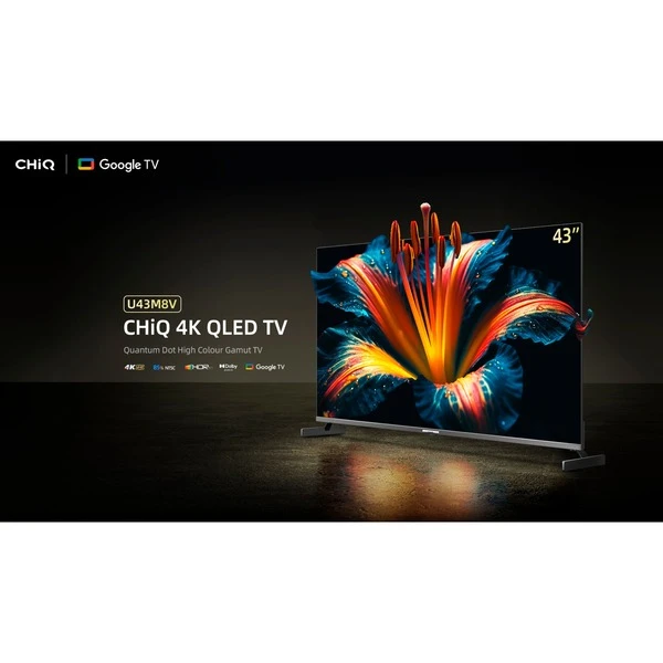Der CHIQ U43QM8V ist ein smarter QLED-Fernseher mit 108cm (43″) Bilddiagonale. Durch seine Ultra HD/4K Auflösung (3820×2160) lassen sich selbst kleinste Details perfekt erkennen. Durch das schlichte nahezu Rahmenlose Design, kann er fast überall aufgestellt werden und empfängt dabei dank Triple Tuner sämtliche Signale über Satellit, Kabel und per terrestrischer Antenne – dank optionalem CI+ Modul auch Pay-TV Programme. Der CHIQ U43QM8V unterstützt die HDR (HDR10)-Technologie und liefert damit eindrucksvolle Farben mit herausragenden Kontrasten. Fotos, Videos oder auch Musik kann schnell und unkompliziert über den USB Mediaplayer abgespielt werden, dabei werden jegliche Sounds von den 20 Watt starken Lautsprechern mit Dolby Audio authentisch wiedergegeben. Als SmartTV bietet er außerdem Zugriff auf Google Assistant und kann auf zahlreiche SmartTV Apps und -Dienste zugreifen.Art.-Nr.: 100015634