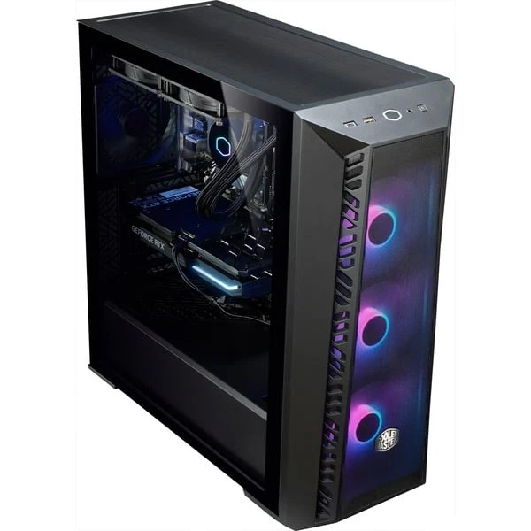 Der Cooler Master Master Box Gaming-PC liefert nahtlose Leistung und beeindruckende Grafik und greift dabei auf die über 30-jährige thermische Erfahrung von Cooler Master zurück, um eine optimale Kühlung für Spitzenleistung und Zuverlässigkeit zu bieten. Ausgestattet mit einem Intel® Core™ i5-13600KF 14-Kern-Prozessor, schnellen 32 GB Kingston FURY Beast DDR5-Arbeitsspeicher und einer NVIDIA GeForce RTX 4070 Grafikkarte mit 12 GB GDDR6X-Grafikspeicher lässt dieser Gaming-PC keine Wünsche offen. Die 1 TB große M.2-PCIe- SSD sorgt für Programm- und Systemstarts in Rekordzeit und bietet zudem viel Platz zum Speichern von Daten. Das schwarzen Midi-Tower-Gehäuse mit Tempered Glass bietet dabei einen optimalen Blick auf das beeindruckende, RGB-beleuchtete Innenleben. Über 2,5-Gigabit-LAN ist der Master Box Gaming-PC netzwerkfähig und diverse Anschlüsse ermöglichen die Verbindung mehrerer Displays und verschiedenster Peripheriegeräte.Art.-Nr.: 100027517