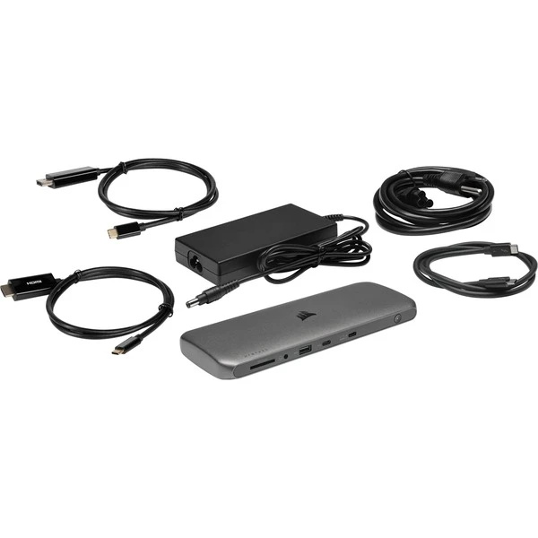Mit dem Corsair TBT200 Thunderbolt 4 Dock kann man eine Vielzahl von Geräten an einem Mac oder PC anschließen. Es bietet eine Bandbreite von bis zu 40 Gbit/s und lädt einen Laptop effizient mit Smart Charging-Technologie auf. Vier Thunderbolt 4-Anschlüsse und mehrere USB-C 3.2 Gen 2 (10 Gbit/s) Anschlüsse bieten zahlreiche Verbindungsmöglichkeiten für moderne Geräte und das Potenzial für ein Dual-Display-Setup. Ein 2,5 Gigabit-Ethernet-Anschluss, eine 3,5-mm-Audio-Kombi-Buchse und ein UHS-II-SD-Kartenleser runden die vielseitigen Anschlüsse des TBT200 ab. Ein in das robuste Aluminiumgehäuse integrierter Kensington-Sicherheitssteckplatz verhindert Diebstahl. Mit dem TBT200 sind alle Geräte nur ein Kabel entfernt.Art.-Nr.: 1881714