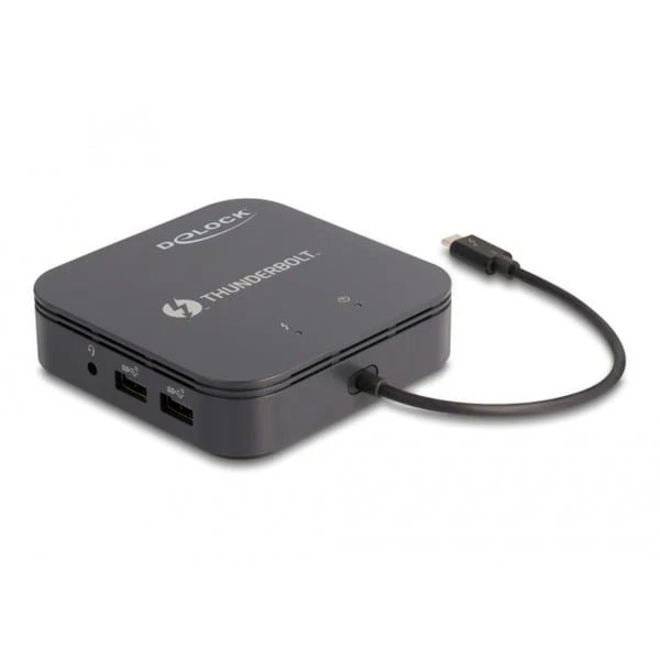 Diese Delock Thunderbolt 3 Mini Dockingstation 8K kann an einen Computer mit Thunderbolt 3 Port angeschlossen werden und stellt eine Vielzahl von Schnittstellen zur Verfügung. Der DisplayPort-Ausgang ermöglicht den Anschluss eines 8K Displays, der HDMI-Ausgang den Anschluss eines 4K Displays, gleichzeitig können zwei Monitore mit 4K Auflösung betrieben werden. Zwei integrierte USB-Ports ermöglichen die Verwendung von Peripheriegeräten, Anschlüsse für ein Headset und Gigabit Netzwerk vervollständigen die Ausstattung. Dank Plug & Play kann das Gerät einfach angesteckt werden und ist sofort betriebsbereit. Bei der Nutzung der Dockingstation wird keine extra Stromversorgung benötigt. Die Dockingstation verfügt über einen USB Type-C Power Delivery Port, an diesen kann das Netzteil des Notebooks oder Tablets angeschlossen werden, um es aufzuladen. Art.-Nr.: 100000424