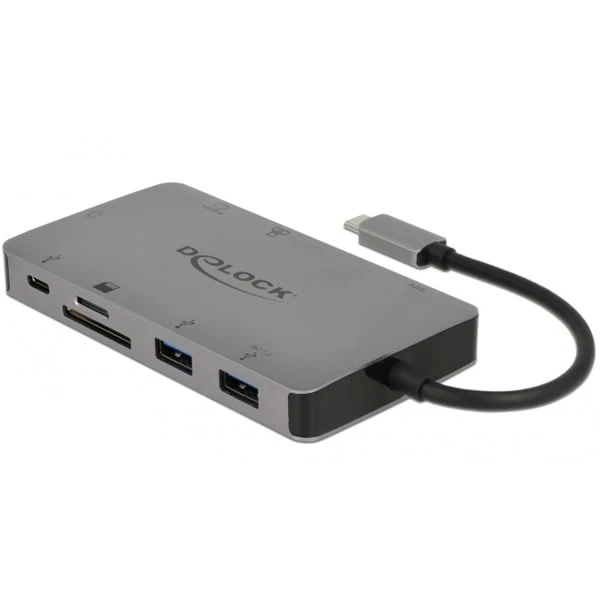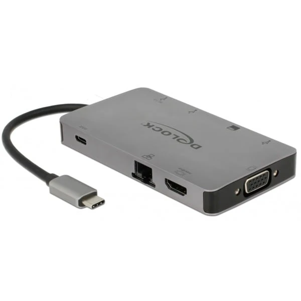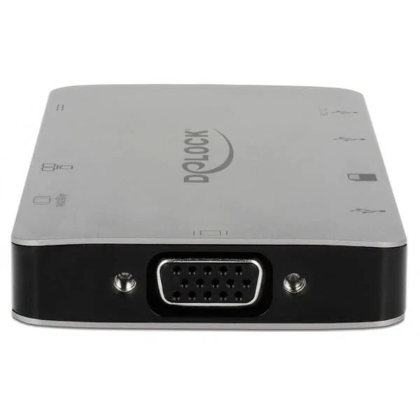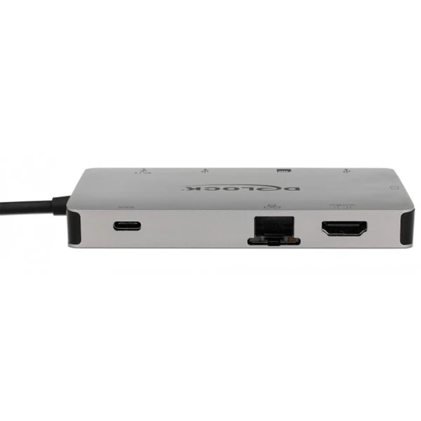 Die USB-C Dockingsstation 4K von DeLOCK wird ganz einfach per USB-C mit dem Notebook verbunden und auch gleichzeitig mit Strom versorgt. Über HDMI und VGA unterstützt die Dockingstation Monitore mit max. 3.840 x 2.160 Pixeln (UltraHD, nur HDMI) oder 1.920 x 1.080 Pixeln (FullHD). Drei USB-A Ports mit max. 5 Gbit/s Übertragungsgeschwindigkeit machen es leicht, Daten zu transferieren. DIe USB-C Dockingsstation 4K besitzt einen SD- und MicroSD Kartenleser, RJ-45 Schnittstelle sowie zwei weitere USB-C Ports. Einer davon kann genutzt werden, um das angeschlossene Notebook via USB-C PD (Power Delivery) mit max. 100 Watt Leistung aufzuladen.Art.-Nr.: 1581525