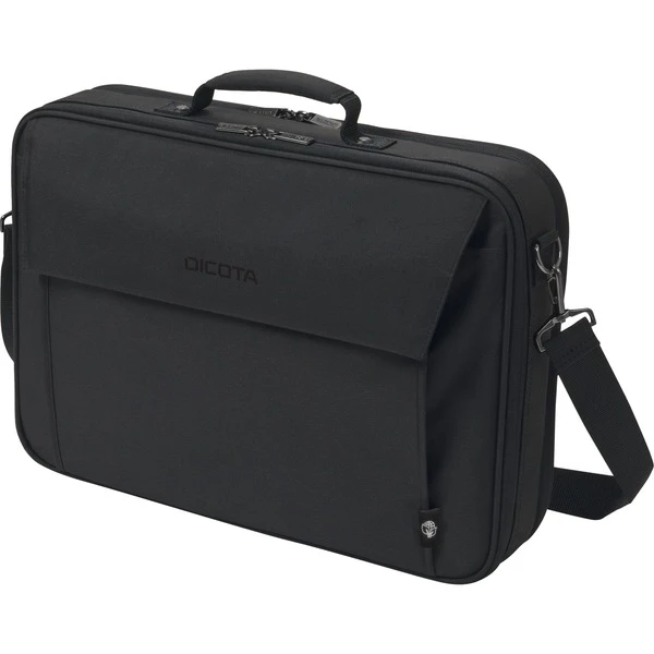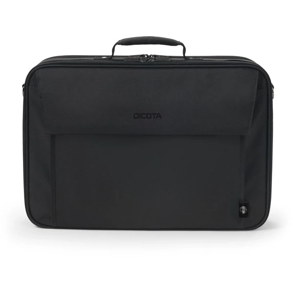Die handliche Clamshell-Tasche Eco Multi Plus BASE mit zusätzlichem Dokumentenfach schützt das Notebook dank dem gepolsterten Notebookfach optimal. Notebooks mit Bildschirmdiagonalen zwischen 35,6 cm und 39,6 cm (14-15.6″) werden damit nicht nur optimal gesichert, sondern auch zusätzlich durch den Spanngurt im Fach fixiert. Zusätzliche Stabilität und Schutz wird durch den Metalldrahtrahmen erreicht. Als Leichtgewicht unter den Notebooktaschen ermöglicht die Eco Multi Plus BASE flexible Mobilität. Dokumente können im dafür vorgesehenen Reißverschlussfach verstaut werden. Im praktischen Vorderfach finden sich genügend Platz für das Smartphone oder weiteres mobiles Zubehör wie Kabel, Stifte oder Ladegeräte, welche immer griffbereit sein sollen. Die Tasche liegt dank der bequemen Tragegriffe angenehm in der Hand und lässt sich im Handumdrehen mit einem integrierten Band am Trolley befestigen. Weiter kann die Tasche auch mit dem längenverstellbaren Schultergurt transportiert werden. Damit ist die Eco Multi Plus BASE die ideale Tasche für alle, die viel unterwegs sind und mit einer umweltfreundlichen Tragelösung die sinnvolle Wiederverwendung von PET Flaschen unterstützen möchten.Art.-Nr.: 1731565