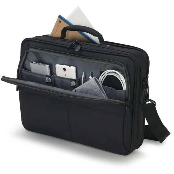 Die Multi Plus SCALE von DICOTA wird aus wiederverwertetem PET hergestellt und bietet ausgezeichneten Schutz für gleiche mehrere Geräte. Diese Notebooktasche nimmt ein Gerät bis zu einer Displaydiagonale von 39,6 cm (15,6″) auf – zusätzlich gibt es ein Einsteckfach für Tablets. Dabei ist die Tasche rundum sicher gepolstert und bietet durch das abschließbare Notebookfach erhöhte Sicherheit. Art.-Nr.: 1820112