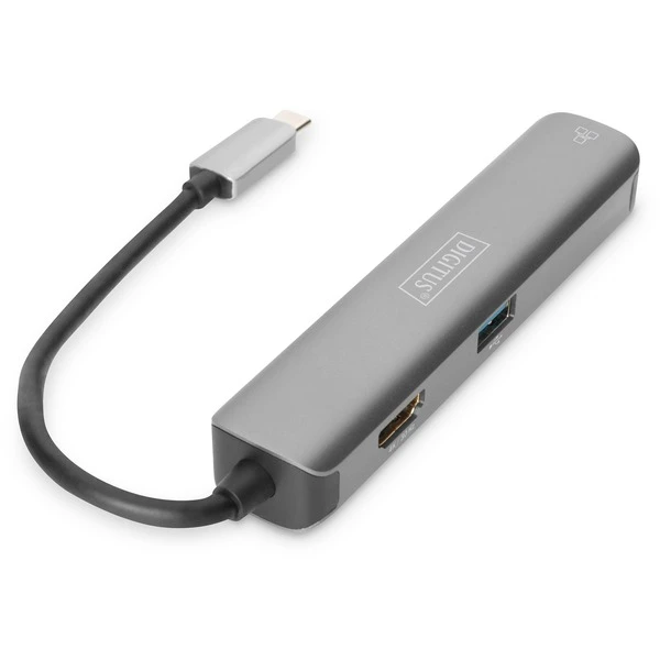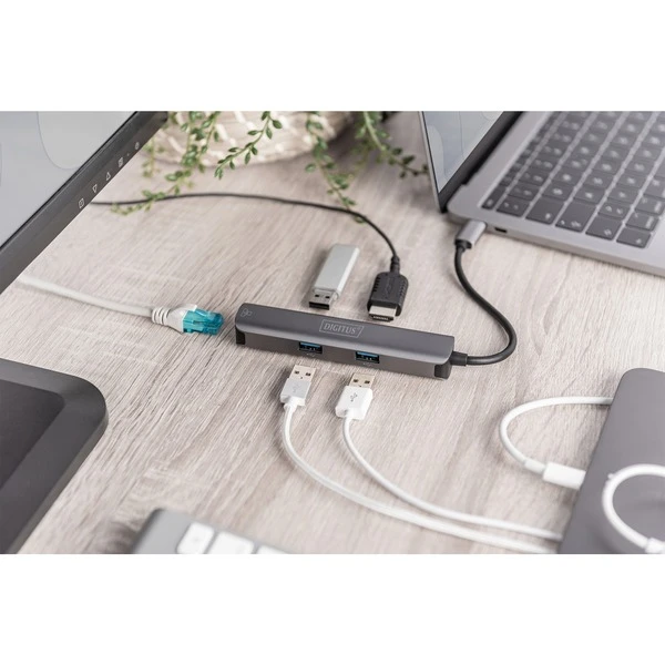 Mit der Universal Docking Station USB-C erweitert man die vorhandenen Anschlüsse des Notebook, Tablet oder Smartphone. Neben einem HDMI-Port, dessen maximale Auflösung bei 4.096 x 2.160 Pixeln liegt, verfügt das Dock über drei USB-C 3.2 Anschlüsse mit 5 Gbit/s für Peripherie- und Eingabegeräte und einem RJ-45-Anschluss.Art.-Nr.: 1800384