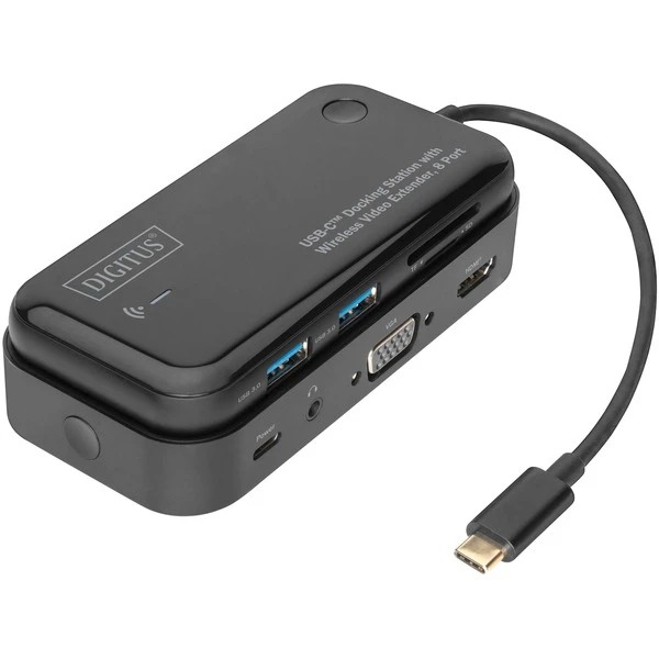 Mit der zweiteiligen Digitus DA-70890 Dockingstation kann man sein Notebook, Tablet oder Smartphone um ein vielfaches an Anschlüssen erweitern. Der Sender verfügt über 2x USB A 3.0 Anschlüssen (je 5 Gbit/s) sowie einen Kartenleser für SD- und MicroSD-Karten bis max. 2 TB. Der Empfänger bietet einen Audio-Ausgang (3.5 mm Klinke) sowie eine VGA- und HDMI-Schnittstelle. Die Videoausgänge unterstützen FullHD-Auflösung (1920 x 1080p, 60 Hz). Die Funkreichweite (5 GHz Band) beträgt bis zu 10 Meter. Mit einer Magnethalterung könne Sender und Empfänger miteinander verbunden werden.Art.-Nr.: 1800388