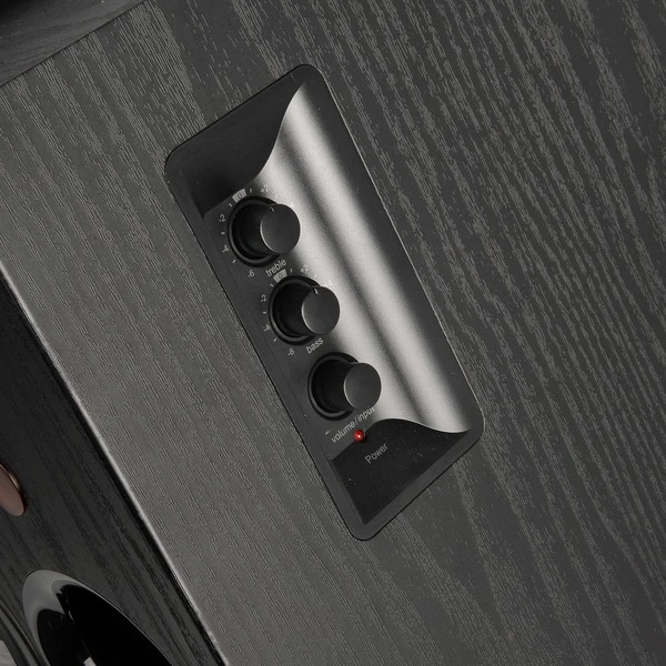 Das kompakte Regallautsprecher-System aus der Edifier Studio-Serie erzeugt mit seinen 150 Watt Ausgangsleistung eindrucksvolle und räumliche Klangergebnisse. Die Lautsprecher verfügen über frontseitige Bassreflexkanäle, die für druckvolle und präzise Bässe sorgen. Über Bluetooth kann Musik direkt vom iPhone oder Android-Smartphone oder iPad / Tablet abgespielt werden. Die Lautsprecher sind in Echtholzgehäusen untergebracht, was zu den exzellenten Klangeigenschaften des 2.0 Systems beiträgt. Seitlich am aktiven Lautsprecher befinden sich die Bedienelemente. Über drei Drehregler können Bassintensität, Höhen und die Lautstärke präzise auf das gewünschte Niveau eingestellt werden. Darüber hinaus lässt sich über die elegante Infrarot-Fernbedienung bequem aus der Ferne die Lautstärke einstellen, das System stummschalten, das Bluetooth ein- oder ausschalten sowie die Audioquelle wählen.Art.-Nr.: 1900374