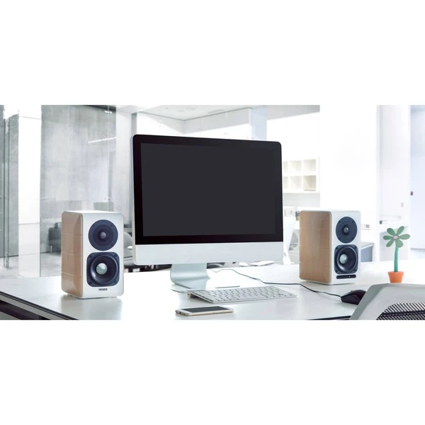 Hinter dem klassischen Look der Edifier S880DB steckt leistungsstarke Technik. Pro Lautsprecher verrichten zwei Treiber, ein laminierter Titan-Hochtöner sowie ein Metall-Diaphragma-Tieftöner ihre Arbeit. Jeder der Lautsprecher hat eine Leistung von 44 W (RMS), so dass das System insgesamt 88 W (RMS) Gesamtleistung aufweist. Neben der Möglichkeit die Lautsprecher an PCs, Notebooks oder TV-Geräte anzuschließen, kann das S880DB-System mittels Bluetooth auch mit mobilen Geräten wie Tablets und Smartphones kommunizieren. Zudem lassen sich Musik-Dateien via USB direkt an den Lautsprechern abspielen, dabei profitiert die Audio-Wiedergabe von einem eigenen XMOS-Audio Prozessor für eine mitreißendes Erlebnis.Art.-Nr.: 1427547