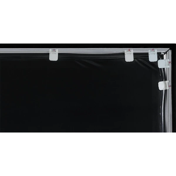 Die Sable Fram Economy Rahmenleinwände sind mit einem edlen Aluminiumrahmen und Samt-Beflockung ausgestattet. Das 110″ (279,4-cm) große Bild ist für 4K, 3D und HDR Inhalte optimiert und lässt Bilder dank dem CineWhite-Tuch leuchtstark und intensiv wirken. Der Gainfaktor beträgt 1.1 und Bilder sind aus bis zu 160° Blicklage noch genauso gut erkennbar. Die innen liegenden Kanten sind abgeflacht um einen Schattenwurf auf das Bild zu vermeiden. Zur optimalen Justierung kann die Leinwand auch nach Montage verschoben werden, ohne sie von der Wandhalterung entfernen zu müssen.Art.-Nr.: 1391956