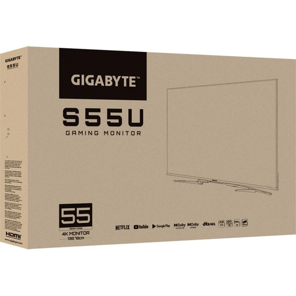 Der GIGABYTE S55U ist ein 139 cm (55″) großer Gaming-Monitor mit UltraHD Auflösung (3.840 x 2.160 Pixel) und ausgestattet mit HDMI 2.1 sowie einer 120 Hz Bildwiederholrate für flüssiges Gaming in atemberaubender Qualität. Das 10-Bit Panel stellt über 1 Milliarde Farben dar und deckt den DCI-P3 sowie sRGB Farbraum ab um realistische Farben wiederzugeben. Durch das smarte Android Betriebssystem und die eingebauten Streaming-Services kann man sofort loslegen. Weitere Highlights des GIGABYTE S55U sind die Unterstützung für Dolby Vision + Atmos und HDR, sowie AMDs Free-Sync Technologie für ein störungsfreies Gaming-Erlebnis.Art.-Nr.: 1912568