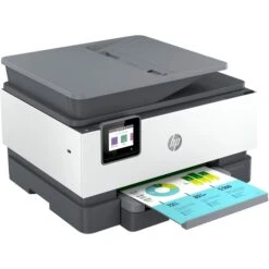 Stilvolles Design, überzeugende Funktionalität: Der OfficeJet Pro 9012e von HP ist ein flexibler 4-in-1-Multifunktionsdrucker, der neben einer Tintenstrahl-Druckfunktion auch über einen Kopierer, einen Scanner sowie ein Faxgerät verfügt. Bis zu 22 Seiten pro Minute (ISO) gibt dieses kompakt gebaute Gerät, das über einen Touchscreen an der Vorderseite bedient wird, bei Druck von Schwarzweiß-Dokumenten aus. Darüber hinaus verfügt der OfficeJet Pro 9012e über eine automatische Duplexeinheit für einfachen beidseitigen Druck und einen ebenfalls duplexfähigen Papiereinzug an der Oberseite, über den Vorlagen zum Kopieren und Scannen eingegeben werden können. Dabei hat das Gerät Schnittstellen für LAN, WLAN und WiFi direct printing, womit der Direktdruck von Mobilgeräten mit iOS und Android möglich wird. Der OfficeJet Pro 9012e ist eine smarte Lösung für den Heimanwender oder kleine Büros. Mit HP Instant Ink ist bei Bedarf immer rechtzeitig Tinte oder Toner zur Hand. Die ersten Druckerpatronen oder Tonerkartuschen werden nach der Registrierung auf der HP-Homepage geliefert.Art.-Nr.: 1750037