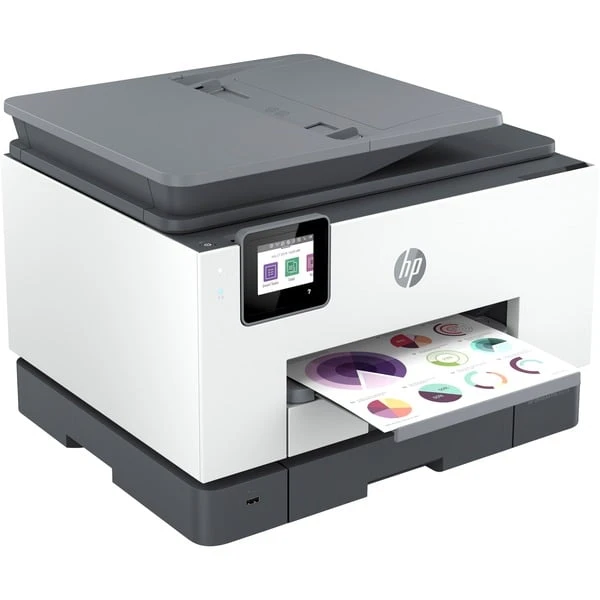 Stilvolles Design, überzeugende Funktionalität: Der OfficeJet Pro 9022e von HP ist ein flexibler 4-in-1-Multifunktionsdrucker, der neben einer Tintenstrahl-Druckfunktion auch über einen Kopierer, einen Scanner sowie ein Faxgerät verfügt. Bis zu 39 Seiten pro Minute (Entwurfsmodus) gibt dieses kompakt gebaute Gerät, das über einen Touchscreen an der Vorderseite bedient wird, bei Druck von Schwarzweiß-Dokumenten aus. Darüber hinaus verfügt der OfficeJet Pro 9022e über eine automatische Duplexeinheit für einfachen beidseitigen Druck und einen ebenfalls duplexfähigen Papiereinzug an der Oberseite, über den Vorlagen zum Kopieren und Scannen eingegeben werden können. Der OfficeJet Pro 9022e hat zwei Papierfächer mit jeweils 250 Blatt Kapazität. Dabei hat das Gerät Schnittstellen für LAN, WLAN und WiFi direct printing, womit der Direktdruck von Mobilgeräten mit iOS und Android möglich wird. Der OfficeJet Pro 9022e ist eine smarte Lösung für den Heimanwender oder kleine Büros. Mit HP Instant Ink ist bei Bedarf immer rechtzeitig Tinte oder Toner zur Hand. Die ersten Druckerpatronen oder Tonerkartuschen werden nach der Registrierung auf der HP-Homepage geliefert.Art.-Nr.: 1750072