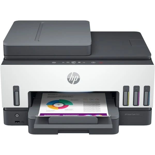 Der Smart Tank 7605 druckt effizient und mit hoher Qualität: Dieser Multifunktions-Tintenstrahldrucker ohne Patronen arbeitet mit integrierten Tintentanks. Tinte wird direkt in die Tanks gefüllt – dies ist deutlich kostengünstiger und umweltfreundlicher als das Einsetzen von Tintenpatronen. Mit im Lieferumfang dieses 4-in-1-Multifunktionsdruckers ist Tinte für bis zu 12000 Seiten/ISO schwarz und bis zu 8000 Seiten/ISO Farbdruck bereits enthalten. Darüber hinaus ist der Smart Tank 7605 flexibel einsetzbar: Er verfügt über eine WLAN- und Bluetooth-Schnittstelle, wird bequem an der Vorderseite bedient und hat einen Flachbettscanner sowie eine Kopierfunktion. Auch eine Faxschnittstelle ist integriert. Hinzu kommen eine Duplexeinheit für beidseitigen Druck und ein Vorlageneinzug an der Oberseite.Art.-Nr.: 100014829