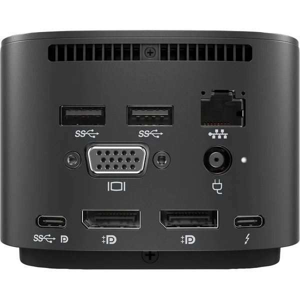 Mit dem Thunderbolt Dock G2 von HP kann man einem Kabel-Chaos effektiv ein Ende setzen und alle Geräte an dem Dock verbinden: Neben zwei DisplayPort-Schnittstellen, an denen sich jeweils Monitore mit maximaler 4K-Auflösung anschließen lassen, besitzt das Dock auch einen VGA-Anschluss für ältere Monitore. Per USB-C wird das Thunderbolt Dock G2 am Notebook angeschlossen und kann darüber auch gleichzeitig geladen werden. Neben zwei USB-A 3.2 (5 Gbit/s) Anschlüssen für Speicher- oder Eingabegeräte, besitzt das Thunderbolt Dock auch einen weiteren USB-C Ausgang sowie einen Thunderbolt-Anschluss. Die maximale Stromversorgung über das Dock liegt bei ganzen 230 W.Art.-Nr.: 1473729