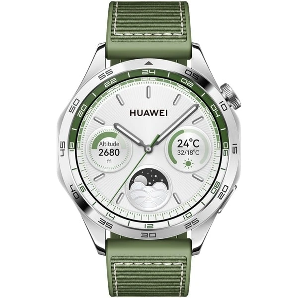 Die Watch GT4 46mm (Phoinix-B19F) besticht durch elegantes, schlankes Design und eine breite Palette an Funktionen. Diese Smartwatch aus dem Hause Huawei integriert ein 3,63 cm (1,43″) AMOLED-Farbdisplay in ein nur 10,9 Millimeter dickes Edelstahl-Gehäuse. Dabei kann das Ziffernblatt ganz nach den eigenen Vorlieben gestaltet werden. Eine breite Palette an Monitoring-Funktionen macht die Watch GT4 zu einem vielseitigen Alltagsbegleiter – darunter finden sich Programme zur Schrittzählung, Stress- und Schlafüberwachung für ein gesünderes Leben. Darüber hinaus bietet die Watch GT4 vielfältige Benachrichtigungsmöglichkeiten. Der Akku hält dabei bis zu zwei Wochen durch, kann innerhalb von 5 Minuten für einen ganzen Tag aufgeladen werden und das Uhren-Gehäuse ist nach IP68 gegen Wasser geschützt. Diese Version wird mit einem grünen Gehäuse und einem gewebten Armband in grün ausgeliefert. Art.-Nr.: 100011784