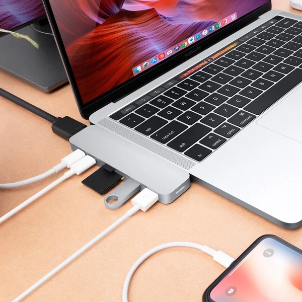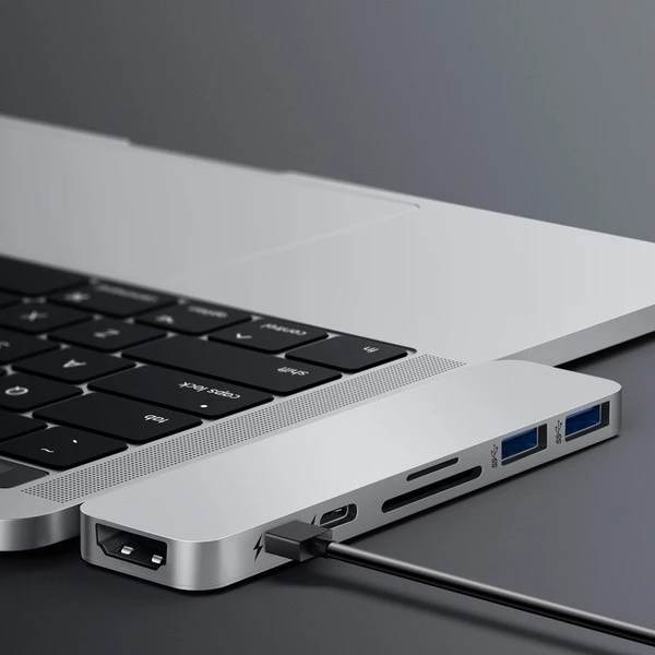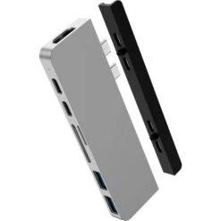 Der HyperDrive DUO 7-in-2 USB-C Hub bietet einen USB-C-Anschluss mit 40 Gbit/s Datenübertragung, 5K-Videoausgabe und 100 W Stromzufuhr. Die zwei USB-C Anschlüsse unterstützen sowohl Power Delivery (PD) & Datenübertragung (40Gbps/100W + 5Gbps/60W). Es stehen ebenfalls noch zwei zusätzliche USB-A 3.0-Anschlüsse, microSD- und SD-Speicherkartensteckplätze zur Verfügung. Mit dem mitgelieferten Magnetstreifen ist eine einfache Befestigung möglich.Art.-Nr.: 1825475