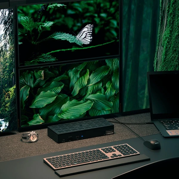 Die ICY BOX IB-DK2288AC ist eine Dockingstation für Notebooks oder auch PCs (Windows und MacOS), die sich dank der insgesamt acht Video-Schnittstellen für ein produktives Arbeiten eignet. Über die HDMI- und DisplayPort Ausgänge können bis zu vier Displays mit max. 3840×2160@60 Hz betrieben werden. Noch höhere Auflösungen von zweimal 5K@60 Hz werden z.B. mit zwei Monitoren über die DisplayPort Schnittstellen erreicht. Die IB-DK2288AC unterstützt Power Delivery mit 100 Watt bzw. 30 Watt, besitzt insgesamt vier USB-A und einen USB-C Port, eine Gigabit LAN Schnittstelle sowie eine Headset Buchse. SD/microSD Kartennutzer erfreuen sich über die schnellere Version 4.0.Art.-Nr.: 100003728