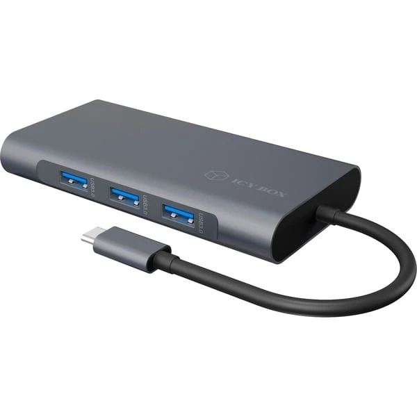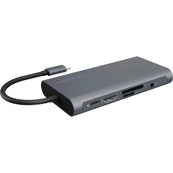 Die ICY BOY IB-DK4040-CPD Dockingstation wird per USB-C Schnittstelle mit einem Notebook (WIndows/Mac) verbunden und erweitert dessen Anschlüsse um zahlreiche Daten- sowie Videoausgänge und Schnittstellen. Neben drei USB-A Ports mit bis zu 5 Gbit/s Datenübertragungsrate verfügt die IB-DK4040-CPD über einen weiteren USB-C Port mit PD (Power Delivery) Funktion zum Aufladen angeschlossener Geräte. Für Kameras oder Smartphones stehen je ein normaler SD und ein MicroSD Kartenleser bereit. Die IB-DK4040-CPD besitzt einen RJ-45 Gigabit LAN Port sowie einen 3,5 mm Kombianschluss für Kopfhörer oder Mikrofon. Um noch produktiver zu Arbeiten kann über VGA (max. FullHD) oder HDMI (max. UltraHD mit 3.840 x 2.160 Pixeln) ein zusätzliches Display an die Dockingstation angeschlossen werden.Art.-Nr.: 1557501
