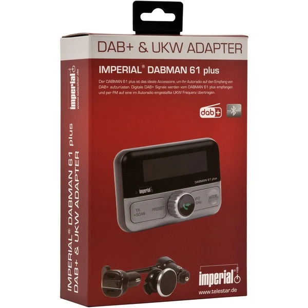Der DABMAN 61 plus ist das ideale Accessoire, um das eigene Autoradio auf den Empfang von DAB+ aufzurüsten. Digitale DAB+ Signale werden vom DABMAN 61 plus empfangen und per FM auf eine im Autoradio eingestellte UKW Frequenz übertragen. Darüber hinaus kann man mit dem DABMAN 61 plus auch externe Geräte mit dem Autoradio koppeln, um z.B. Musikdateien von Smartphone wiederzugeben. Außerdem verfügt der kompakte Empfänger über eine Freisprechfunktion.Art.-Nr.: 1583601