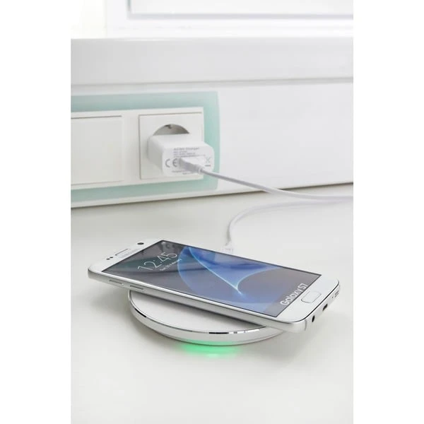 Die Ladestation Wireless Charger WA1 von Intenso lädt Handys mit QI-Standard kabellos auf. Der Ladevorgang wird durch Kunststoffhüllen bis 5mm Dicke nicht beeinträchtigt. Der Wireless Charger WA1 lädt im Standardmodus mit bis zu 5 Watt, im Schnelllademodus mit bis zu 10 Watt. Der passende Schnellladeadapter wird mitgeliefert. Die rutschfeste Oberfläche sorgt für Sicherheit.Art.-Nr.: 1437315