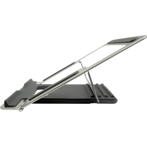 Der NBS-100 ist ein hochwertiger Notebook-Ständer, der für alle gängigen Notebooks geeignet ist. Er lässt sich in der Höhe in 4 Stufen verstellen (90 – 113mm, 23 – 30°) und trägt aufgrund seines Open- Frame-Designs passiv zur Kühlung des Notebooks bei. Dank der kompakten Abmessungen passt der NBS-100 auf nahezu alle Arbeitsflächen, was ihn zu einem optimalen Begleiter in der Notebook- Tasche macht. Großflächige Gummiauflagen schützen zudem das aufliegende Notebook sowie die Arbeitsfläche vor Kratzern und verhindern zudem lästige Vibrationen, die durch die Arbeit mit dem Notebook entstehen können.Art.-Nr.: 1780167