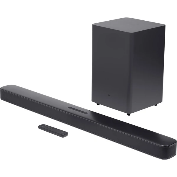 Die JBL BAR 2.1 füllt den ganzen Raum mit erstklassigem Sound: Das System besteht aus einer Soundbar inklusive drahtlosem Subwoofer und insgesamt 300 Watt (RMS) Gesamtleistung. Dank JBL Surround Sound und JBL Deep Bass wird ein brillantes Surround Sound Erlebnis mit spürbar sattem Bass und klaren Höhen erzeugt die das Gesehene noch mitreißender machen. Die Dolby Digital Technologie lässt jeden noch so kleinen Ton authentischer und realistischer wirken, um sich der Szene noch näher zu fühlen. Mit Bluetooth, HDMI und einem optischen Ausgang bietet die BAR 2.1 viele Möglichkeiten zum Anschließen von Endgeräten – ganz egal ob Fernseher, Tablet, Smartphone oder USB-Sticks/Festplatten.Art.-Nr.: 1564164