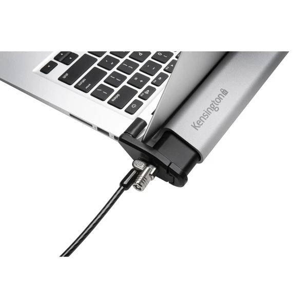 Die als einfache Sicherungslösung für Laptops ohne Sicherheits-Slots entwickelte Laptop-Locking Station 2.0 aus gebürstetem Aluminium bietet freien Zugang zu den seitlichen Anschlüssen und die Flexibilität, den Laptop ganz nach Wunsch zu drehen, zu schieben und zu kippen. Die Laptop-Locking Station erfordert keine Hardwaremodifikationen am Laptop, wodurch das ästhetische Design des Laptops erhalten bleibt. Verstellbare Sicherungsarme ermöglichen die leichte Anpassung an 11”-15,6” MacBook-Modelle und andere ultraflache Laptops. Die Laptop-Locking Station 2.0 ist mit rutschfesten Füßchen und Auflagepolstern ausgestattet, die den Laptop vor Kratzern schützen. Die Locking Station kann mit dem MicroSaver 2.0 Laptopschloss an einem feststehenden Gegenstand gesichert werden.Art.-Nr.: 1658472