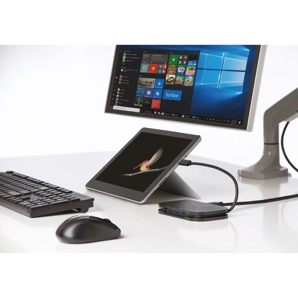 Die Kenginston SD1610P Dockingstation ist wie geschaffen für Surface Notebooks oder Tablets und wird einfach über USB-C mit diesen verbunden – dabei ist das Kabel in der Dockingstation integrierbar und somit immer dabei. Die SD1610P verfügt über einen HDMI- und VGA-Ausgang mit dem Monitore in UltraHD (HDMI) oder FullHD (VGA) betrieben werden können. Weitere Anschlüsse sind z.B. zwei USB-A Ports, eine Gigabit LAN Schnittstelle sowie ein weiterer USB-C Port mit 60 Watt Power Delivery Funktion zum Aufladen angeschlossener Endgeräte.Art.-Nr.: 1631743