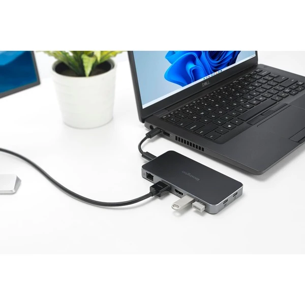 Mit der mobilen UH1460P USB-C Dockingstation hat man Anschlüsse dabei, die man braucht – ob unterwegs oder zu Hause. Die portable Dockingstation ist universell kompatibel und eine ideale Plug-and-Play-Lösung ohne zusätzlichen Treiber. Ultra HD (Single 4K @ 60Hz) erweitert die visuelle Produktivität durch hohe Auflösung, Kontrast und Farbtiefe. Die UH1460P unterstützt bis zu 85 W Passthrough-Stromversorgung, sodass man ein USB-C-Netzteil zum schnellen und einfachen Aufladen jedes USB-C-fähigen Laptops verwenden kann. Dank des kompakten Design lässt sich diese portable Dockingstation einfach im Rucksack oder in der Tasche verstauen. Enthält ein 11,2 cm langes abnehmbares USB-C-Kabel, das in der Dockingstation verstaut werden kann.Art.-Nr.: 100001988
