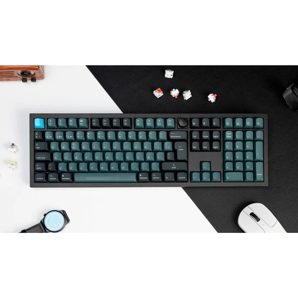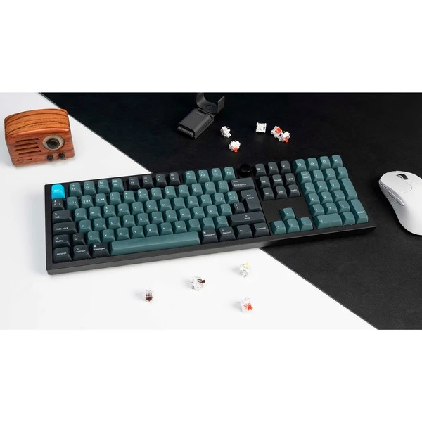 | Weitere Informationen | DE-ISO-Layout | Vollständig montierte Tastatur inkl. Aluminiumrahmen, PCB, PC-Platte, schalldämmender Schaumstoff, Gehäuseschaumstoff, 16 Gaskets (12 vorinstalliert, 4 zusätzlich), 7 Sets an Stabilisatoren, Drehregler, 1 Set ABS-Tastenkappen und 1 Set Keychron K Pro Tastenschalter (vorgeschmiert) | Wiederaufladbarer 4000 mAh Li-Polymer-Akku | Akkulaufzeit: Bis zu 300 Stunden bei ausgeschalteter Hintergrundbeleuchtung, bis zu 100 Stunden bei eingeschalteter Hintergrundbeleuchtung | Bluetooth-Version: 5.1 | Polling-Rate Bluetooth: 90 Hz | Polling-Rate USB-Kabel: 1.000 Hz | ||