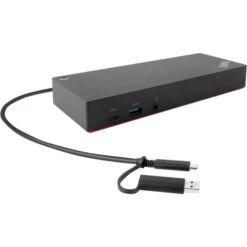 Das Lenovo Hybrid Dock kann kinderleicht per USB-C oder üblichem USB-Anschluss an ein Notebook oder einen PC angeschlossen und versorgt diese mit einer großen Vielzahl an Anschlüssen: Neben insgesamt drei USB-A 3.2 und zwei USB-A 2.0 Ports verfügt das Hybrid Dock über je zwei HDMI- und DisplayPort Ausgänge, mit denen Monitore mit 4K (UltraHD) Auflösung betrieben werden können. Dank USB-C Schnittstelle können angeschlossene Notebooks via „Rapid Charge“ auch gleichzeitig aufgeladen werden, so dass man kein externes Netzteil benötigt.Art.-Nr.: 1499376
