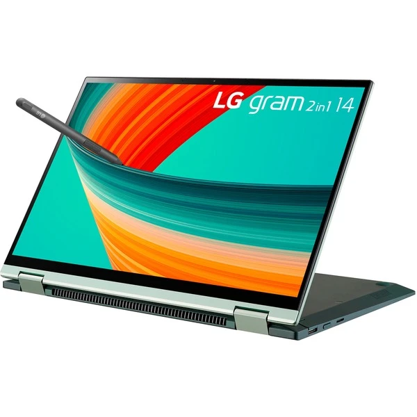 Durch flexible 360°-Scharniere ist dieses LG gram zugleich Notebook sowie Tablet – und alles dazwischen. Dank der intuitiven Bedienung mit dem beiliegenden LG Stylus Pen auf dem robusten Gorilla Glass Victus gehen handschriftliche Notizen ebenso leicht von der Hand wie Skizzen oder komplette Zeichnungen. Angetrieben durch einen Intel® Core™ i7-1360P Prozessor der 13. Generation mit Intel® Iris® Xe Grafik werden produktive Arbeit, kreatives Schaffen und packende Unterhaltung auf dem brillanten 35,6 cm (14“) IPS-Display zum Genuss. Mit 2x Thunderbolt 4, USB-A, Bluetooth 5.1 und Wi-Fi 6E stehen verschiedene Vernetzungs- und Erweiterungsoptionen zur Verfügung. Art.-Nr.: 1912402