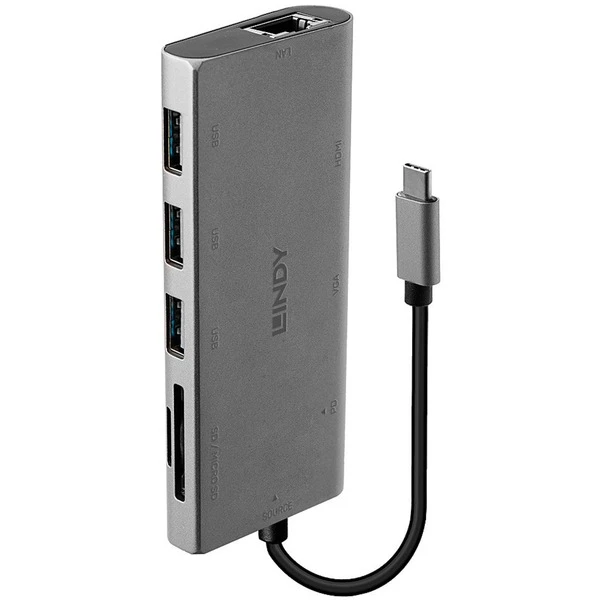Die DST-Mini Plus mit VGA ist eine kompakte, multifunktionale Lösung für das mobile Arbeiten ist in einem robusten Aluminiumgehäuse untergebracht. Sie verfügt über ein hochwertiges, fest montiertes USB-C-Kabel, das für eine lange Lebensdauer auf Reisen konzipiert wurde. Die Dockingstation unterstützt über ihren HDMI-Anschluss einen weiteren Bildschirm am Laptop mit Auflösungen bis 4K@30 Hz. Dies geschieht mit Hilfe einer einzigen USB-C-Verbindung dank Verwendung des DisplayPort Alternate Mode. Alternativ können auch gestochen scharfe Full-HD-Auflösungen mit 1080p über den VGA-Anschluss geschickt werden. Wenn beide Videoausgänge angeschlossen sind, ist 1080p Full HD möglich, wobei die Inhalte auf beiden Displays gespiegelt werden. Mit drei SuperSpeed-USB-Anschlüssen Typ A (5Gbit/s), (Micro-) SD Card Slots, USB-C Power Delivery, Gigabit Ethernet, VGA und HDMI Gigabit-Ethernet macht die Docking Station die gängigsten Schnittstellen an dem mobilen Gerät verfügbar.Art.-Nr.: 1873011