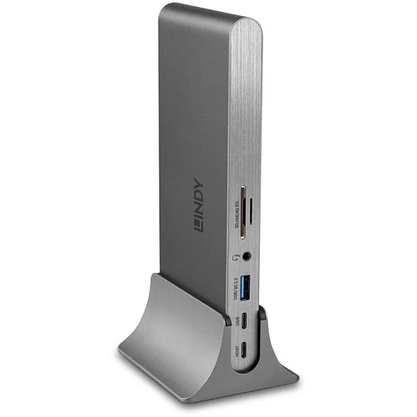 | Zubehör | Vorhanden | 0.5m USB Kabel Typ C (Stecker an Stecker), Multi-Country-Netzteil 12V 2A, Ständer für Docking Station, Lindy Handbuch | |