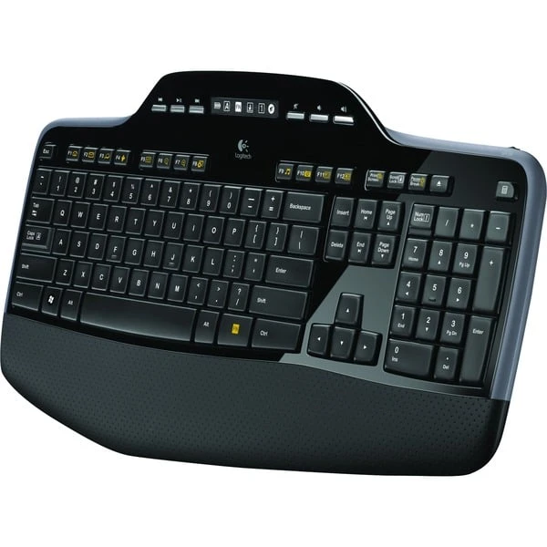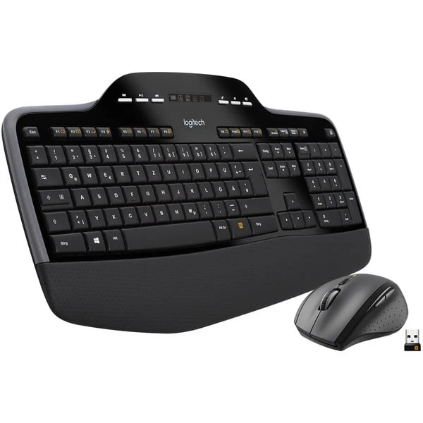 Dank konkaver Tasten, einer gepolsterten Handballenauflage und einer Maus mit hyperschnellen Bildläufen gehen bei dem Desktop-System Logitech Wireless Desktop MK710 Komfort und eine höhere Produktivität Hand in Hand. Die konkaven Tasten mit leicht abgerundeten Kanten sorgen für die richtige Fingerhaltung und machen stundenlanges Arbeiten zum spielerischen Tippvergnügen. Die handgerechte Maus des Wireless Desktop MK710 Bringt die Hände und Finger in eine bequeme und natürliche Position. Das LCD-Dashboard zeigt auf einen Blick die Symbole an, die dem Anwender Aufschluss über den Ladezustand der Batterie sowie den Status der Feststelltaste, der Rollen-Funktion und der Num-Taste geben. Der Empfänger ist so winzig, dass er im Notebook eingesteckt bleiben kann.Art.-Nr.: 149999
