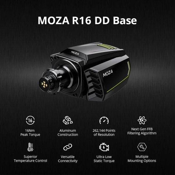 Die MOZA R16 Wheel Base liefert mit einem gewaltigen Drehmoment von 16 Nm einen beeindruckenden Aktionsradius, um die Art von präzisem Eintauchen zu ermöglichen, die nur direkt angetriebene Räder bieten können – vom GT bis F1. Inspiriert von den aktuellen Supersportwagen-Trends, besticht die R16 Wheel Base durch ihr robustes Design und die zweifarbige Lackierung. Die R16 ist aus einer Aluminiumlegierung gefertigt, was der Basis ein felsenfestes Gefühl und Gewicht verleiht. Das optimierte Motordesign weist praktisch keine Drehmomentwellen, Kerben oder Verzahnungen auf und in Kombination mit der kraftvollen Drehmomentabgabe sind hartes Bremsen, Curbs und Drifts deutlicher und stärker als je zuvor. Die überlegene Temperaturkontrolle des R16-Encoders bietet ein hervorragendes Verständnis der Radposition und ermöglicht so eine genaue und klare Kommunikation bei Rennen. Der Hands-off-Schutz kann das Verletzungsrisiko wirksam vermeiden und die Kontrolle schnell wiederherstellen, indem er erkennt, dass die Hände vom Lenkrad genommen werden. Einmal aktiviert, stoppt er schnell jegliche Schwingungen und zentriert das Rad sicher. Die geschwindigkeitsabhängige Force-Feedback-Dämpfung der R16 Wheel Base erhöht den dämpfenden FFB-Effekt, wenn die Fahrzeuggeschwindigkeit zunimmt, und verringert die Dämpfung, wenn die Fahrzeuggeschwindigkeit abnimmt, um ein echtes Rennauto zu imitieren, was zu einer größeren Stabilität bei hohen Geschwindigkeiten und einer besseren Manövrierfähigkeit bei niedrigen Geschwindigkeiten führt. Der FFB-Equalizer von MOZA ermöglicht die vollständige Anpassung und Feinabstimmung des FFB-Effektspektrums für ein perfektes Setup unter allen Bedingungen. Das MOZA Pit House Control Center erlaubt dem Fahrer, den Gerätestatus zu überprüfen, Einstellungen anzupassen und Voreinstellungen zu laden. Die Spielkonfiguration lassen sich im MOZA Pit House Launcher speichern, um schnell ein Spiel aus dem Pit House heraus zu starten. Alle Einstellungen von Radstand, Lenkrad, Pedalen usw. können jederzeit über die MOZA App geändert werden, sodass der Griff zu Tastatur und Maus entfällt.Art.-Nr.: 1912664
